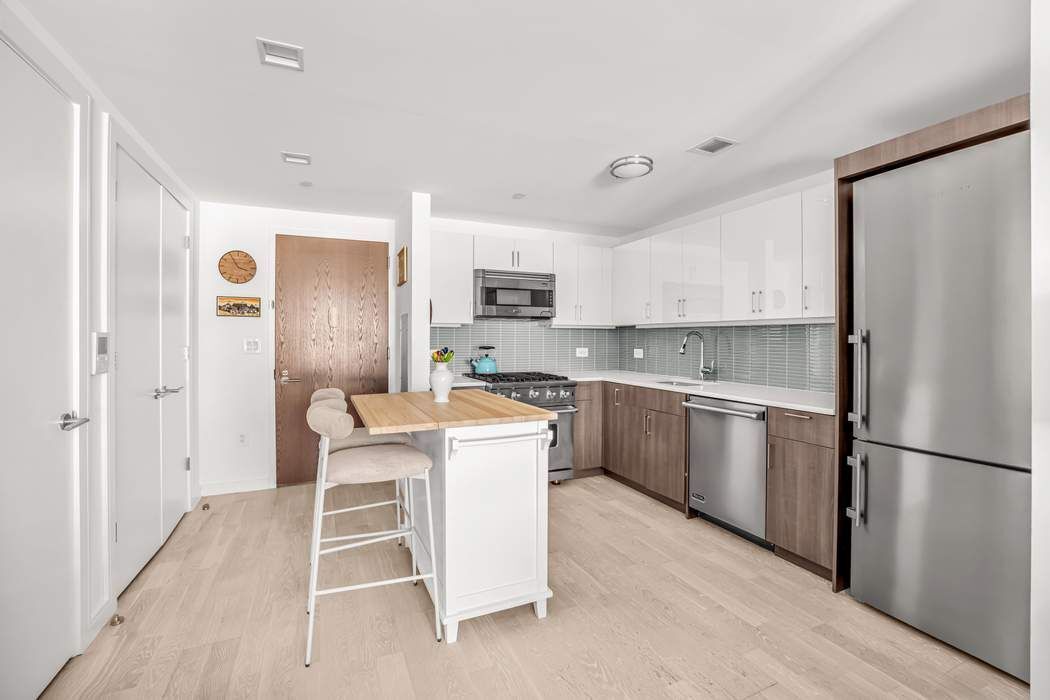 Spacious & Bright One-Bedroom Penthouse with Washer/Dryer Mint Condition/Tax Abatement This sun-filled penthouse offers an open layout with generous living and dining space, oversized floor-to-ceiling windows, and abundant closets. Gray oak floors and sweeping sky views create a bright and airy home. The exclusive Penthouse kitchen package includes a Liebherr refrigerator, Viking gas range, dishwasher, and microwave. Modern finishes—quartz countertops, mosaic glass backsplash, wood-grain lower cabinetry, and glossy white uppers—make this kitchen a chef’s delight. The sleek bath features Florentine Carrara wall tile, Grigio Medio floors, recessed medicine cabinet, and wood vanity with integrated sink. Smart-home and eco-conscious details include a WiFi-enabled EcoBee thermostat, Fisher & Paykel washer/dryer, USB charging ports, and energy-efficient double-glazed Low-E windows. Amenities include a 24-hour attended lobby, rooftop terrace, fitness center, party room, children’s playroom, pet spa, bike storage, and optional parking/storage. Conveniently located near the 2, 3, A, C, and B trains, The Rennie offers modern living with exceptional value in Manhattan.