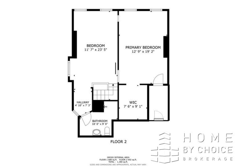 Approximately 1,400 square feet of authentic loft living await, with soaring exposed beam ceilings, exposed brick walls, hardwood floors, and double exposures from the 12 windows that flood the home with sunlight from morning to evening.