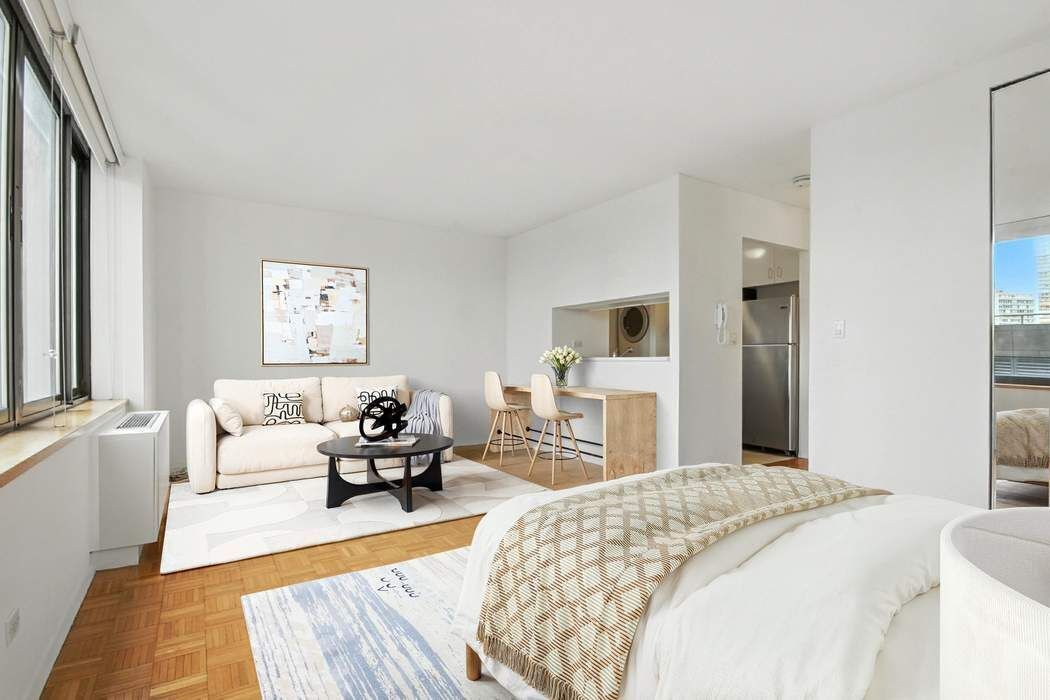 Bright Alcove Studio with Washer/Dryer at The Alfred Condominium Welcome to Residence 16D at The Alfred, a sun-filled alcove studio that combines smart design, modern comfort, and spectacular city views from a prime Lincoln Square location. Oversized windows bring in abundant natural light and frame sweeping open views from the 16th floor. The pass-through kitchen is fully equipped with stainless steel appliances, and the marble bath offers a spa-like feel. A washer/dryer is located within the apartment for your convenience, and the alcove layout provides flexibility to create a separate sleeping or home office area. The Alfred is a full-service condominium on a quiet cul-de-sac, directly across from Lincoln Center and just blocks from Central Park and Columbus Circle. Residents enjoy an exceptional suite of amenities, all included in the rent: a 75-foot lap pool, hot tub, sauna, steam rooms, two fully equipped gyms, racquetball court, children’s playroom, landscaped courtyard garden, resident lounge, on-site garage, and attentive 24-hour doorman and concierge service. This location places you in the center of it all, with world-class dining, shopping, performing arts, and multiple subway lines just moments away. Photos are of the actual unit and some may be virtually staged or enhanced. Call to see this sun-splashed, awe-inspiring luxury loft-style home today. Tenant is responsible for the following to rent this apartment: First month’s rent and one month’s security deposit to landlord (refundable per lease and NY law). $20 credit report fee per applicant to a third-party processor. Condominium fees: $120 per applicant condo background check, $300 condo move-in fee, $300 condo move-out fee (applied to move-out), $700 condo processing fee.