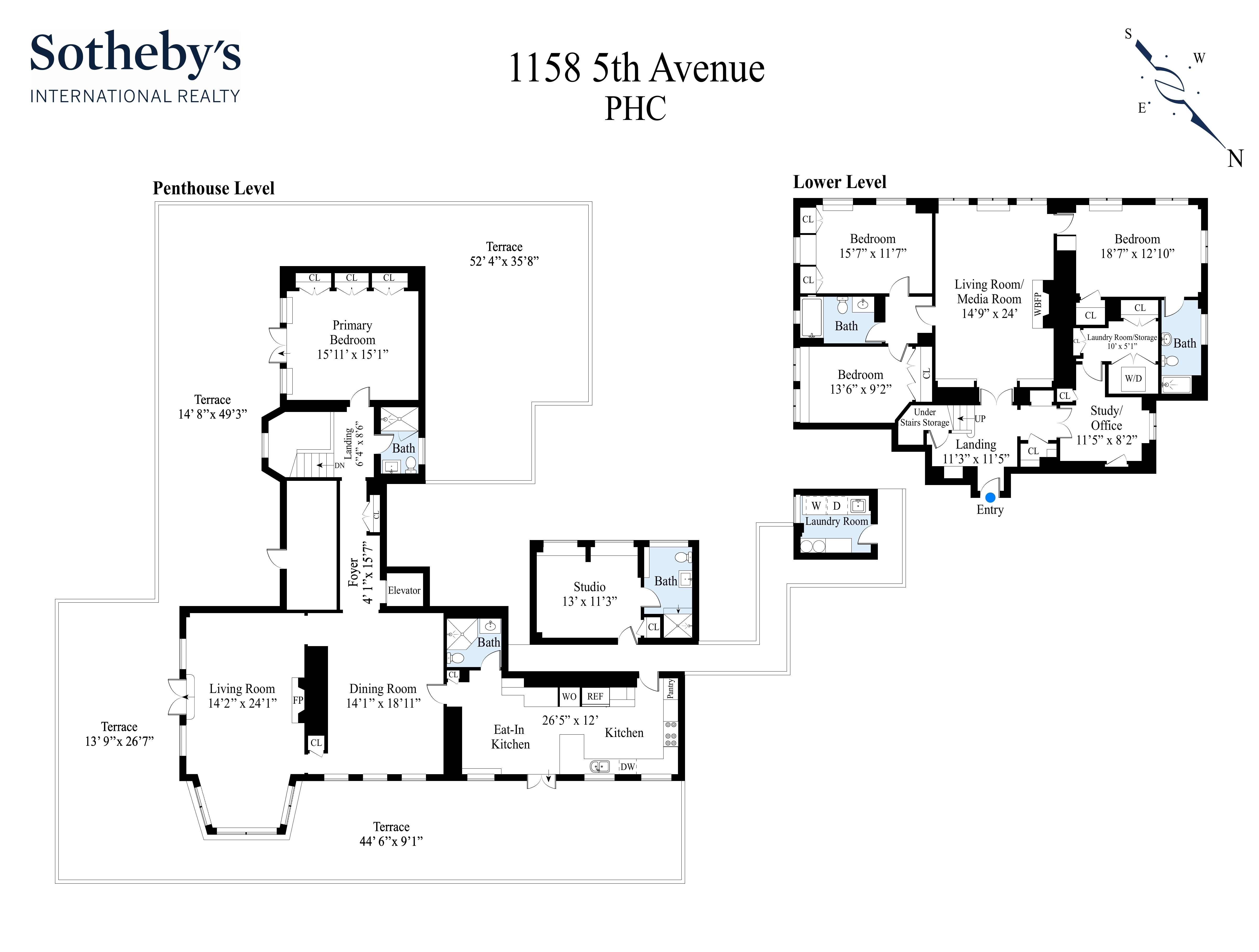 Classic yet airy, sophisticated yet comfortable, this residence is a rare find for the discerning buyer seeking a truly remarkable Fifth Avenue home. The apartment has laundry rooms on both levels, central A/C upstairs and thru wall downstairs, two fireplaces, one WBF and the other is gas. There is a 2.5% buyer flip. 1158 Fifth Avenue is a white-glove cooperative, originally designed in 1924 by C. Howard Crane and Kenneth Franzheim. The building has a 24-hour doorman and concierge, live-in resident manager, fitness center, bike storage, and central laundry.