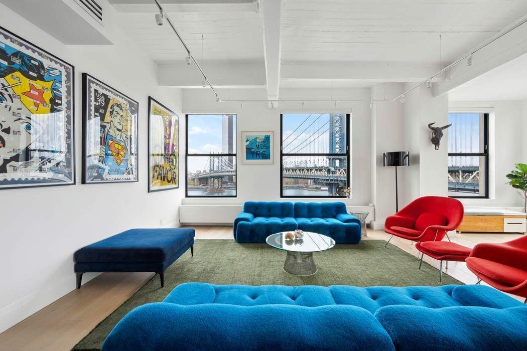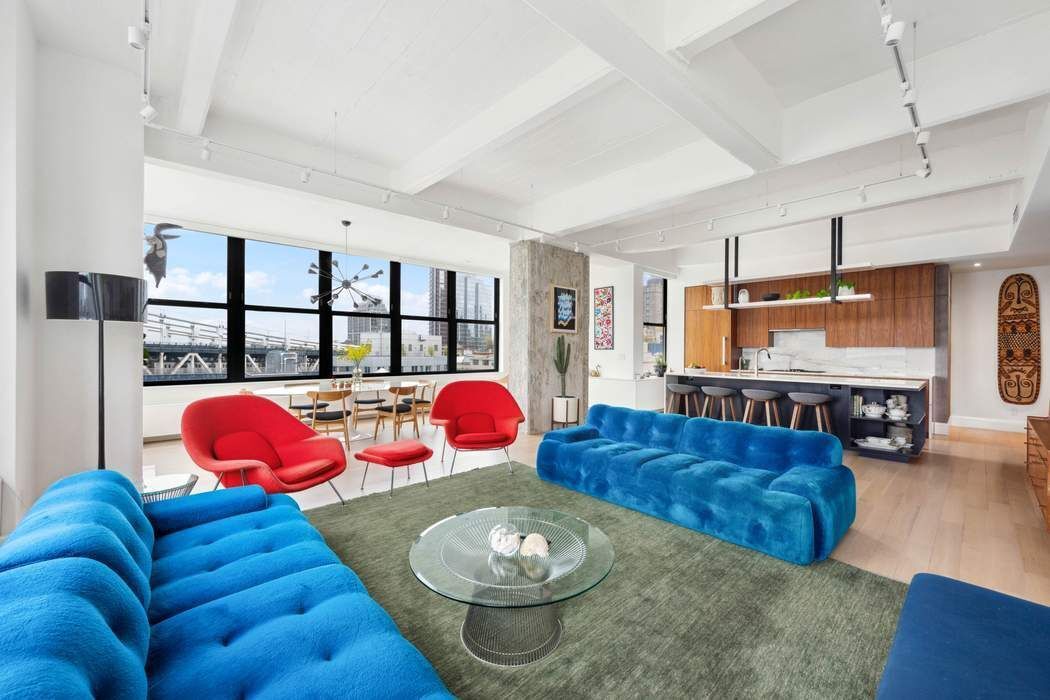 This breathtaking northeastern corner loft just recently underwent a meticulous full gut renovation, completely reconfigured and transformed into the true essence of DUMBO loft living. Everything was thoughtfully designed with no expense spared. This now true 3-bedroom, 2.5 bathroom, plus a home office spans across approximately 2,477 +/- sq. ft., surrounded by walls of over-sized windows and showcases jaw-dropping views of the Manhattan Bridge, Brooklyn Bridge, Brooklyn Bridge Park, East River, and New York City Skyline. Upon entering this special home through the large gallery hallway, you’ll be immediately impressed by the expansiveness of the living, dining, and kitchen areas as well as the custom high-end finishes evident throughout. The 11+/- concrete beamed ceilings, stunning wide plank white oak flooring, and massive windows are consistent throughout and wrap the space to allow for beautiful natural light to flood through the home. This space truly makes this home ideal for everyday living or entertaining guests. The open chef’s kitchen features sleek top-of-the-line appliances such as a Miele oven and six-burner stovetop, a Miele refrigerator, a Miele dishwasher, and a full-sized SubZero wine fridge with two built-in refrigerator drawers. The open chef's kitchen features an oversized marble island with an abundance of storage options, above-shelving, and under-the-counter custom cabinetry. The primary bedroom is highlighted with a beautiful large custom-fitted walk-in closet and a stunning en-suite bath. The renovated spa-like bathroom has been designed with tilework throughout, double vanity marble vessel sinks with storage, a built-in linen closet, a deep soaking bathtub, and a separate waterfall shower with marbling tiling throughout. The second and third bedrooms are both generously sized and conveniently located just adjacent to the second full bathroom which has a double vanity with storage. Rounding out this incredible home is a versatile office, currently set up as a TV/media room. It can also serve as a dedicated work-from-home space and features a custom-built-in couch, making it suitable for guests, entertaining space or as an interior sleeping area. Other features inside this home are a customized full-sized laundry/utility room with stainless steel cabinetry, a Bosch W/D, half bath directly off the foyer, and an updated central air Nest system throughout. The Clock Tower Condominium, DUMBO’s premier loft building, has a magnificent marble lobby with 24-hour concierge service, a bright & well-equipped gym with an adjoining common roof deck, a bike room and additional storage. The Clock Tower is located at the heart of Brooklyn Bridge Park, Empire Stores, St. Ann’s Theater, restaurants, shopping, cafes, subways, ferry, and all that Dumbo has to offer.