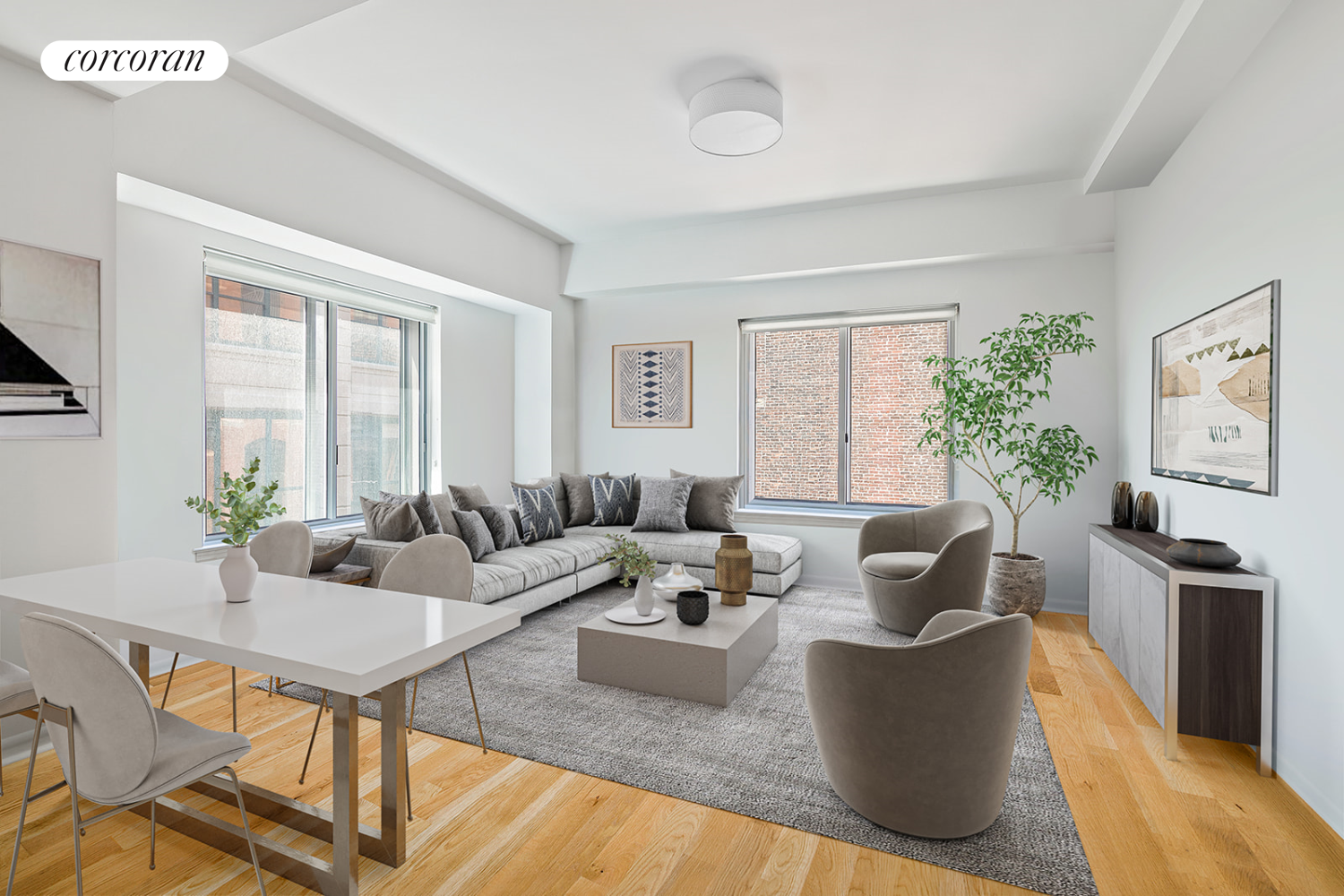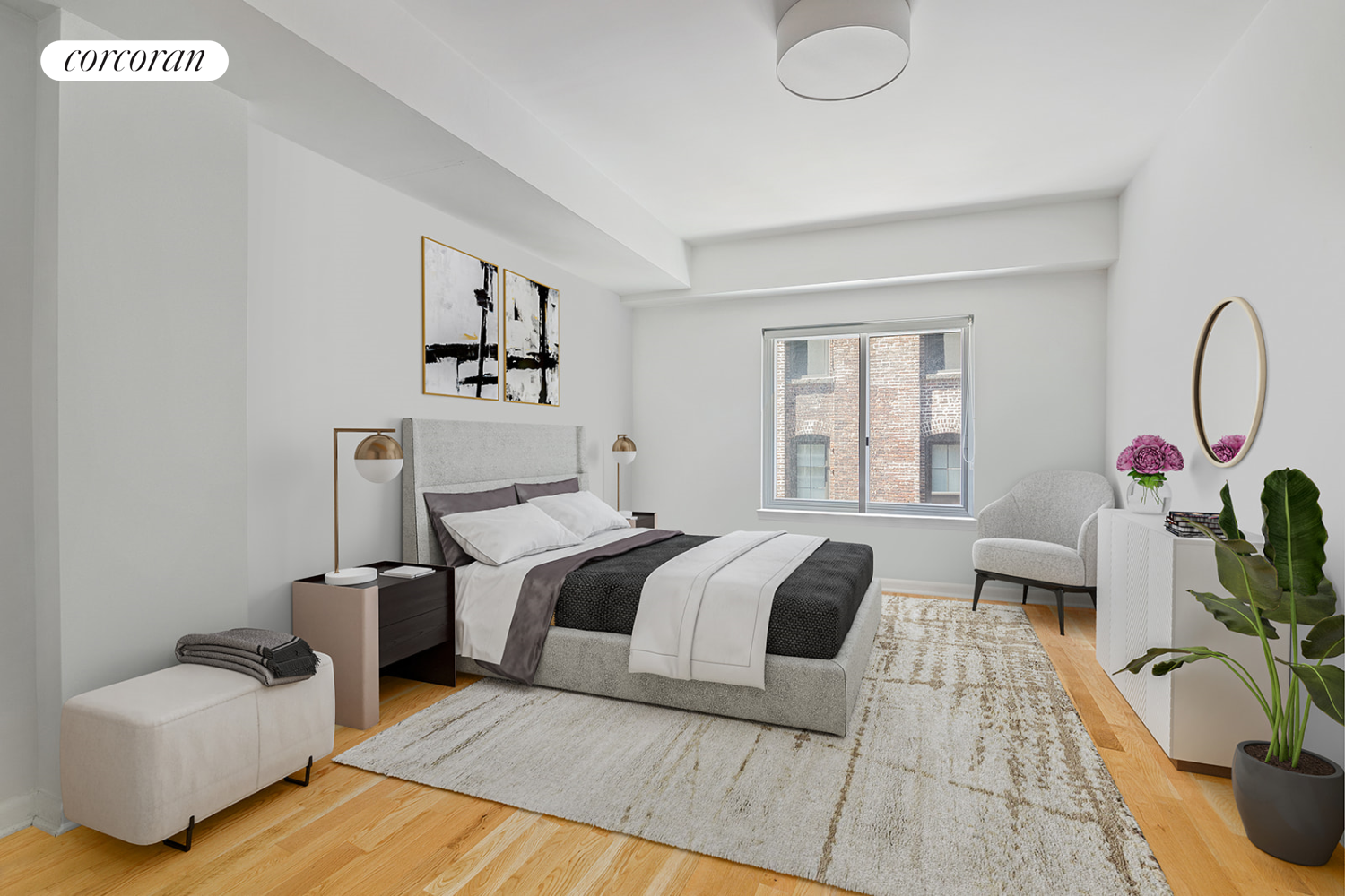 133 Water, 6E, is an oversized corner one bedroom one bathroom home which is approximately 912 square feet. It is one of the largest one bedroom on market under $1.45m in DUMBO.