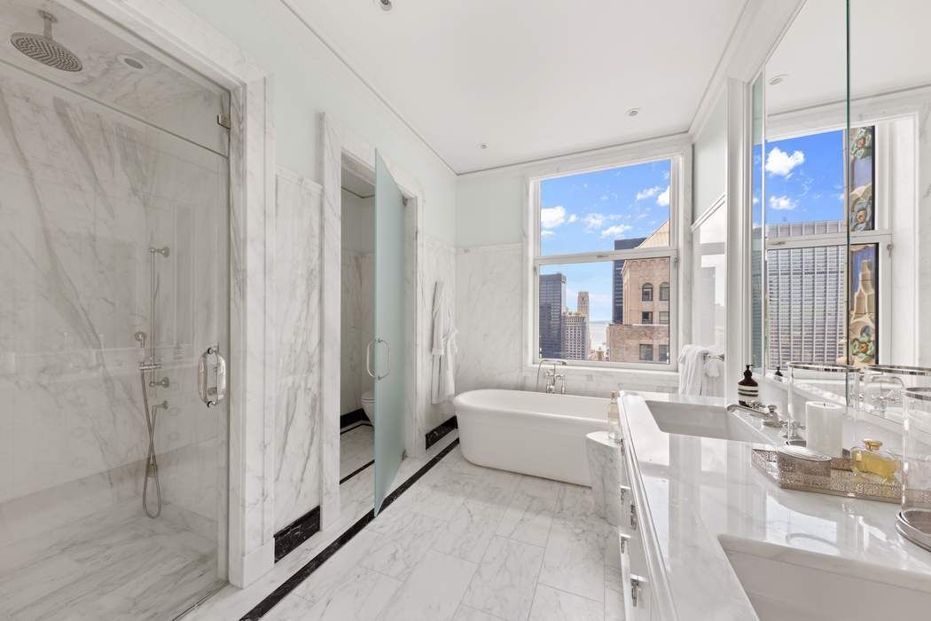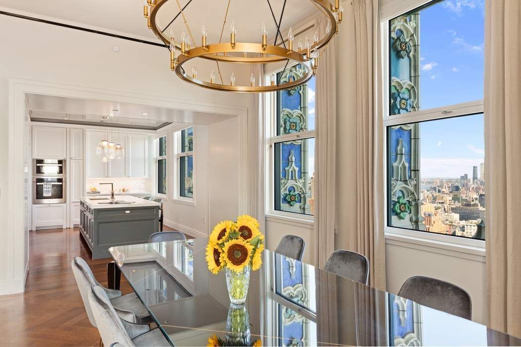 The Apartment – Loft Volume, Iconic Views, & Special Architectural Details Perched high in the iconic Woolworth Building—the world’s first skyscraper and one of New York’s most recognizable landmarks—Residence 38A is among the most distinctive homes in the collection. This luxurious residence offers nearly 12’ +/- ceilings and sweeping city and river views, artfully framed by the building’s extraordinary multicolored terra-cotta surrounds - a rare architectural detail unique to this special floor. Reimagined by world-renowned architect Thierry Despont, the home marries solid prewar construction with modern luxury, creating a space equally suited for grand entertaining and luxurious family living. The residence provides dramatic lofty living within a secure, discreet, and full-service setting. The expansive eat-in chef’s kitchen is both elegant and functional, featuring Calacatta Caldia marble countertops, custom Dada cabinetry, Dornbracht fixtures, and a full suite of Miele appliances—including a wine fridge and dual dishwashers. The oversized corner primary suite is a serene retreat, complete with a 13’ x 10’ walk-in closet and a spa-like bath boasting a steam shower, freestanding Porcelanosa soaking tub, dual vanity with Dornbracht platinum-finish fixtures, and radiant-heated Calacatta Caldia marble floors. Additional highlights include solid oak herringbone floors, 8-foot solid-core doors with Nanz hardware, a full-sized vented washer/dryer, abundant storage throughout, and three exposures (north, east and south) through sixteen oversized 8’ +/- windows that flood the home with natural light. The Building – A New York Icon With never more than two homes per floor, life at The Woolworth Tower Residences offers a club-like intimacy with white-glove service and amenities that include: a Fitness Studio set 300’ +/- above street level with sunny skyline and east river views; Woolworth Pool, Hot Tub, and Sauna; the Gilbert Lounge; Wine Cellar and Tasting Room; Bike Room; On-Site parking; and discreet resident-only Lobby featuring meticulously restored historic coffered ceilings. Originally commissioned by visionary retail magnate Frank W. Woolworth, architect Cass Gilbert’s magnificent 792-foot tall neo-Gothic masterpiece continues to capture the imagination and grace the world’s most famous skyline. With museum quality restoration and craftsmanship, this award-winning project can never be replicated. The Neighborhood - Dynamic Downtown Rare opportunity to own a piece of NYC history in this beloved National Historic Landmark located in lower Tribeca, one of the city's most dynamic neighborhoods with outsized upside. Fine dining, shopping, hotels, numerous parks and green spaces, and The Ron Perelman Performing Art’s Center are all moments away.