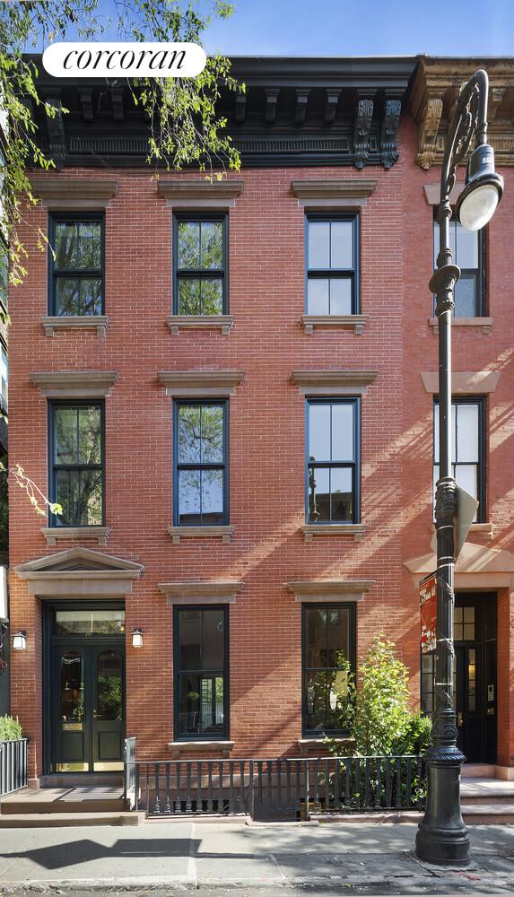Incredible opportunity to purchase this newly renovated townhouse on highly coveted West 4th Street. Located on a tree-lined block in prime West Village, this lovely landmark home is a must-see. No expense was spared in this Sebastien Segers designed home boasting six bedrooms, five full bath and two half baths. Enter through an inviting foyer on the parlor floor and notice the walnut paneling, a unique detail present throughout the home. Townhouse lovers will delight in the original refinished fireplaces, wood casement windows, and 11-foot-high ceilings. The large living space flows beautifully to the open kitchen and dining. There is a wood-burning fireplace in the living room and a gas fireplace in the dining area. The walnut kitchen features custom cabinetry, black Venato counters, Miele appliances, espresso maker, Tyara counter tops, center island with a Marin finish, and Watermark aged antique brass fixtures. There is a seamless flow from indoor to outdoor living with a terrace featuring glass block flooring, white quartz counter, sink, grey backsplash, and gas grill.