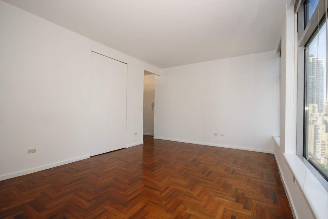 Live well and sleep well at "The Mondrian". Excellent size studio on a high floor w/ excellent light and views. Facing east, you have a "sliver of river" and city view. Nice ceiling height, beautiful herringbone rosewood floors, a wall of windows, central a/c, kitchen foyer. 24 hour doorman, concierge, 4th floor roof deck, and close to everything. Call today for an appointment. ~$1600 fee ($500 refundable)