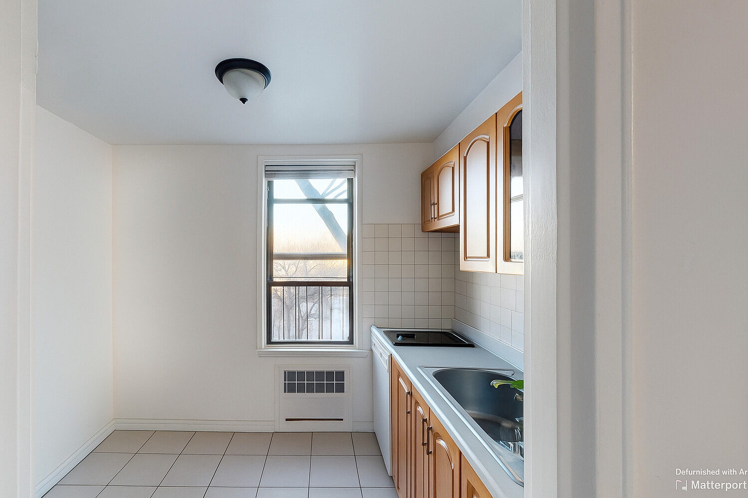 This spacious one-bedroom apartment, set in a desirable Post-War building, offers a practical layout and comfortable living. Upon entering, you'll find a foyer with a coat closet. The West-facing living room and bedroom are generously sized and filled with natural light. The updated windowed eat-in kitchen is complemented by a tiled bathroom, which also features a window. Hardwood floors run throughout, and storage is generous with two closets plus a spacious double closet. All utilities are included in the maintenance except electricity and cooking gas.