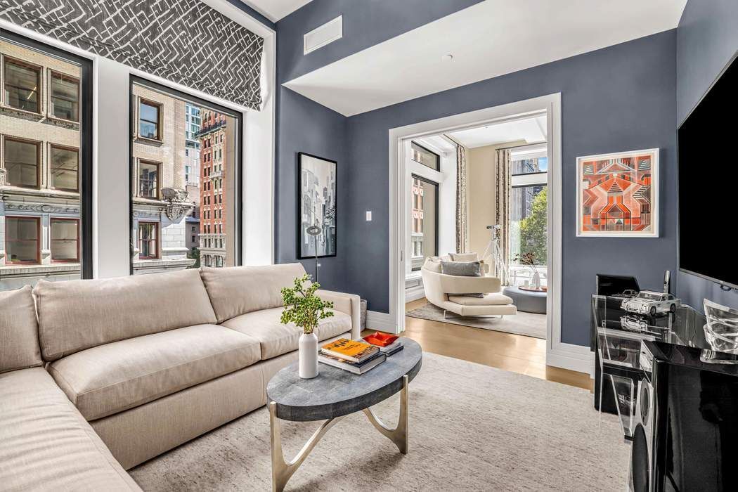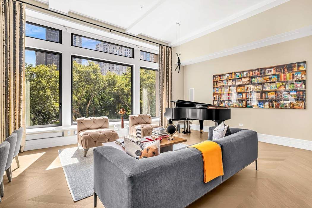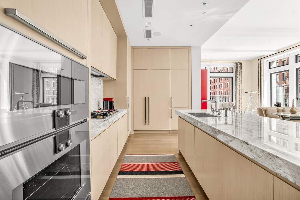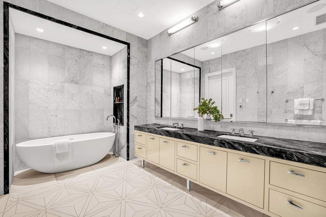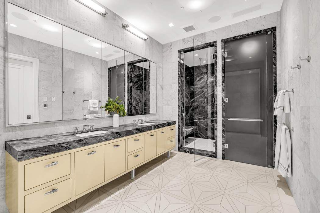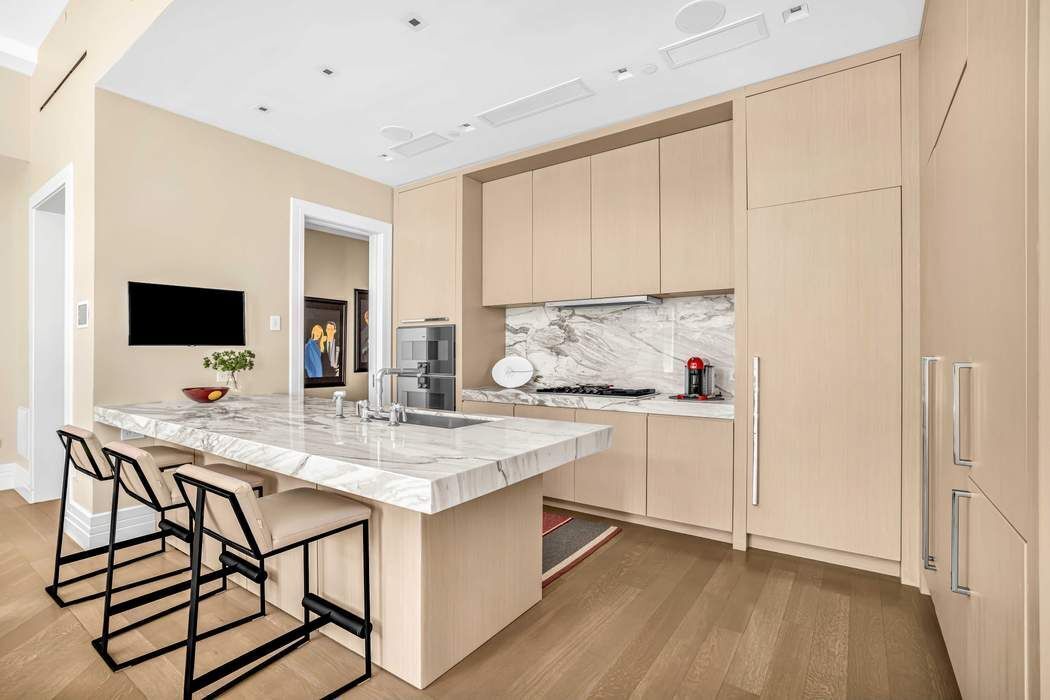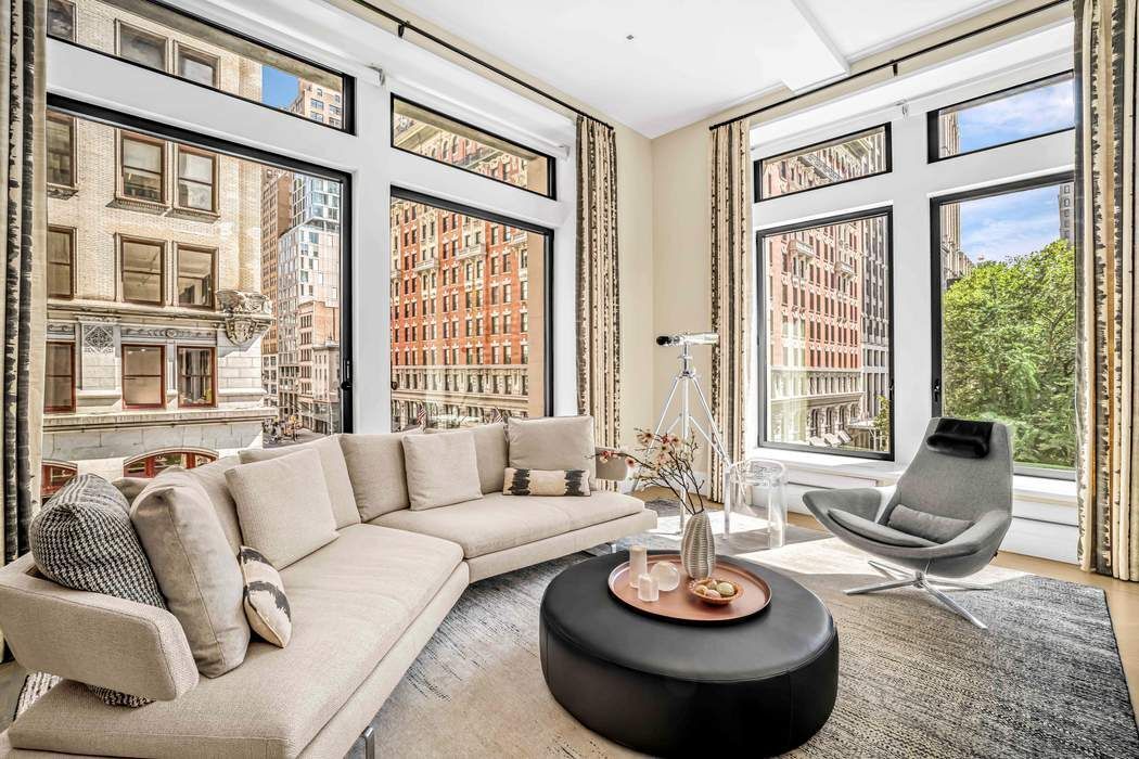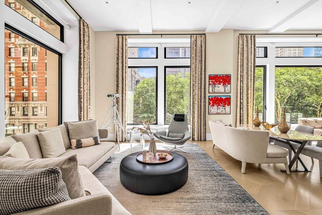 BESPOKE ELEGANCE ON MADISON SQUARE PARK A colossal picture window frame offers a breathtaking vantage point of the iconic Madison Square Park, its landscape, sculptures, curated art, and the surrounding buildings of old New York. This one-of-one residence in 212 Fifth Avenue has soaring 13-foot ceilings and an expansive fifty-seven feet of full frontal, unobstructed, awe-inspiring park views both in its great room and primary suite. Designed by Eve Wildrick who brilliantly incorporates the picture frame view and prewar architecture with a contemporary flair imbuing the home with a comfortable, inviting elegance. The drama begins in the grand foyer with its book-matched Calacatta marble hand selected from Italy. The gallery hallway opens into the gracious entertaining space which includes a cocktail area, grand piano, dining area and corner living room. The integrated high-end chef’s Gaggenau kitchen offers bar dining, custom ash wood cabinetry and 4-inch thick Calacatta marble. The living room opens into a media room with custom pocket doors. This room can also serve as a third bedroom or guest room with en-suite bath. The bedroom suites are kept intentionally separate for privacy in a classic wing configuration. Only the finest quality materials coupled with the best craftsmanship were employed throughout the home. The primary bedroom with its park facing vista includes a dressing room closet, spa bath with radiant-heated Thassos stone floors, fluted Carrara marble walls, solid surface Lacava tub, double vanity, and Waterworks fixtures. The secondary bedroom features an en-suite bath with soaking tub. Other features include a stunning powder room, washer/dryer, solid hardwood floors in a stylish Chevron pattern, fresh air vent, and smart home technology with electronic blinds, all off and on switch, HVAC system zones, and a sound system. Included with the sale is a storage unit. Come home to premier services and amenities; 24-hour doorman, concierge, Jay Wright-designed fitness center, yoga studio, golf simulator, screening room, lounge, game room, children’s playroom, catering kitchen, boardroom, and treatment room. 212 Fifth Avenue is a boutique condominium building in a class of its own.