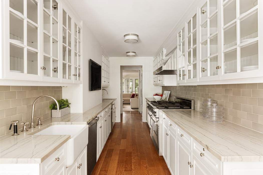 A wrought-iron gate leads to the idyllic front courtyard. Inside, a foyer welcomes you to the Garden Floor, with an eat-in kitchen, dining and living areas. The kitchen offers stainless-steel appliances, new oak floors, Luce de Luna quartzite counters and custom cabinetry. Surrounded by glass doors offering incredible natural light, the dining and living room overlook the bucolic private garden where you can relax and entertain.