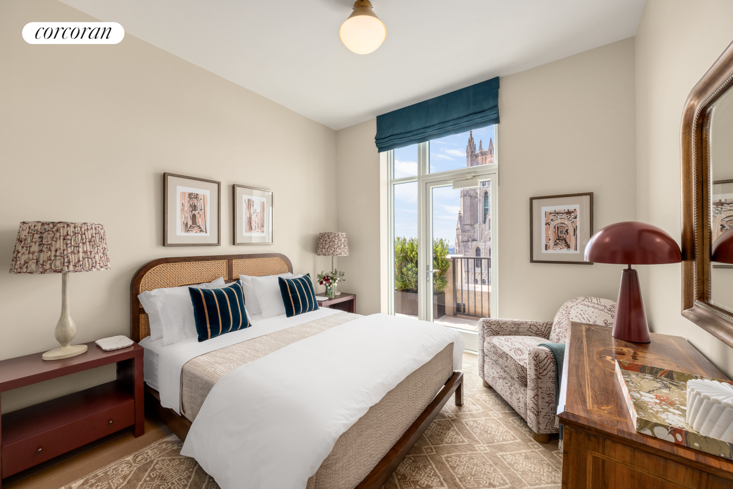 Residence 33C is a corner three-bedroom, two-bathroom home with powder room that offers sweeping northern and western views over the Hudson River, Riverside and Sakura Parks, and the iconic spire of Riverside Church. Boasting over 1,600 square feet of finely detailed living space, this residence features a gracious corner living and dining room that adjoins both a covered outdoor loggia space and a windowed kitchen that can be elegantly concealed behind a solid wood pocket door. The west-facing primary bedroom suite incorporates a 5-fixture bathroom with deep soaking tub and large glass-enclosed walk-in shower, and a walk-in closet. Two additional bedrooms share this residence's spectacular views over the Hudson River, as well as a conveniently located hall bath.