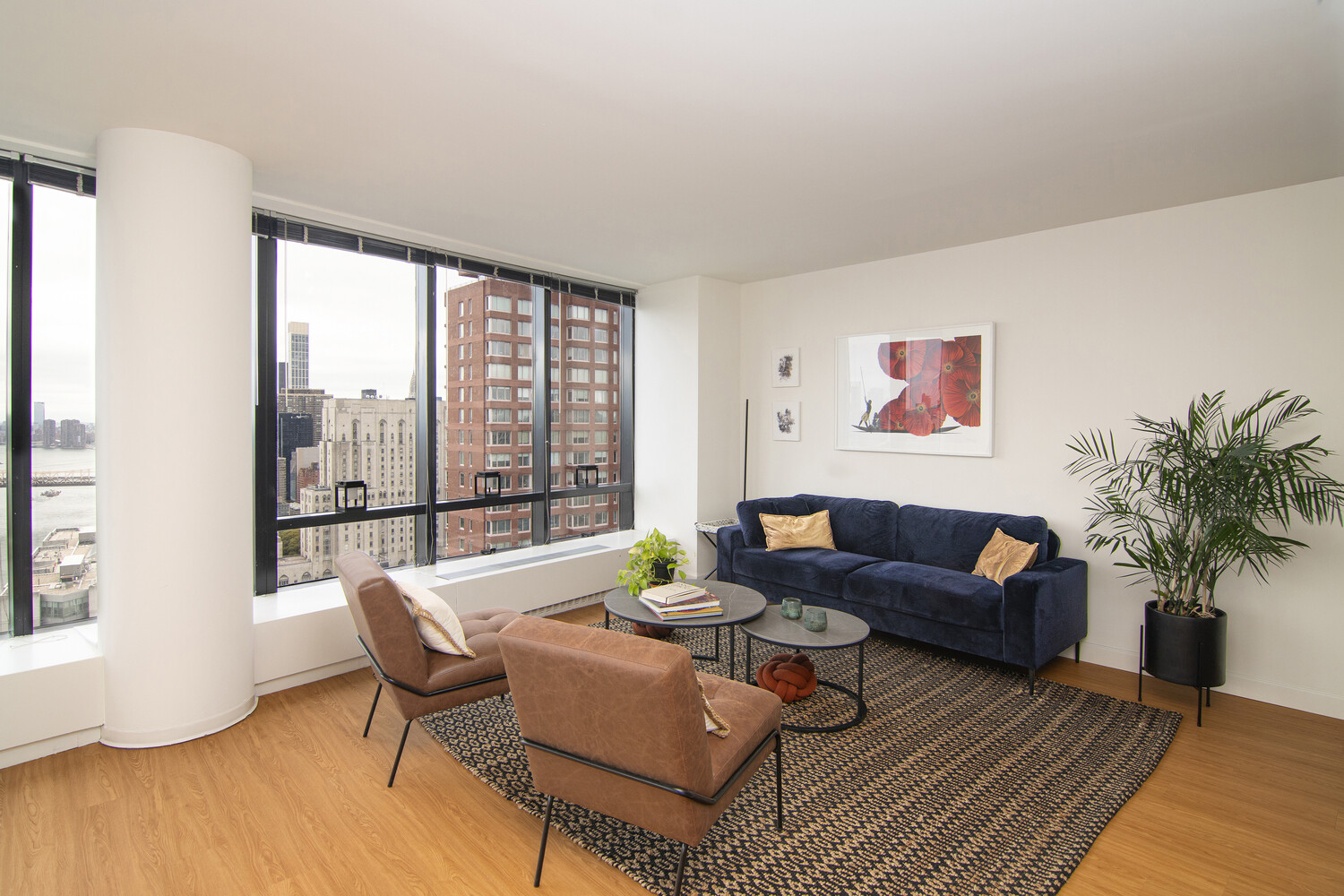 Southeast-facing 3 Bedroom, 2 Bathroom with Floor-to-ceiling windows overlooking the East River
