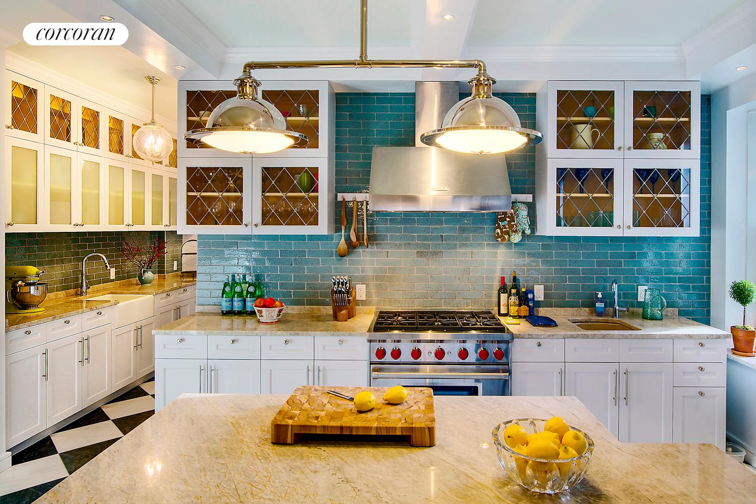 Elegant prewar details-high ceilings, pristine moldings, and original hardwood floors-blend seamlessly with modern luxuries: a stunning expanded eat-in chef's kitchen with top-line appliances and butler's pantry, through-wall A/C in most rooms, en-suite baths, washer/dryer, and excellent storage.
