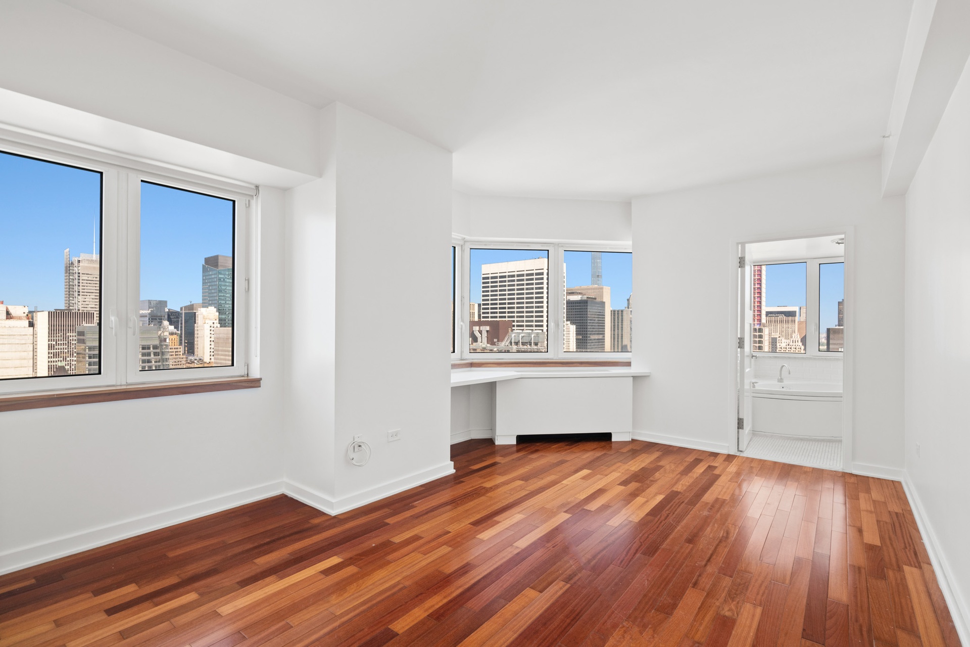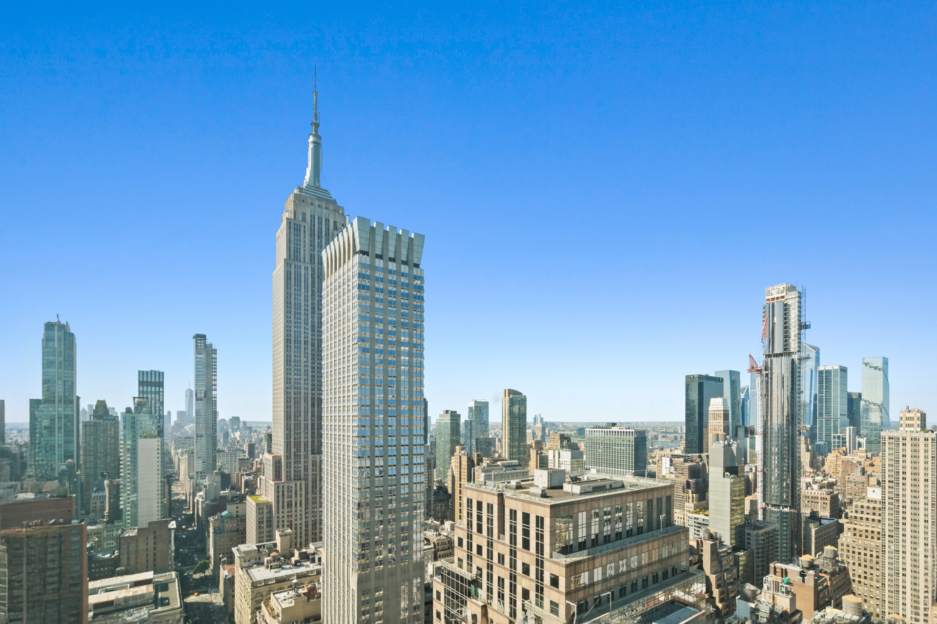 Perched high on the 53rd floor of the prestigious 425 Fifth Avenue, this sun-drenched corner residence offers sweeping panoramic views in every direction—north, south, and west—through windows in every room. Spanning approximately 1,583 square feet, this thoughtfully designed 2-bedroom plus library (easily convertible to a third bedroom) features a gracious entry foyer, an expansive living and dining area, and floor-to-ceiling vistas that elevate everyday living. The windowed chef’s kitchen is outfitted with rich cherry wood cabinetry, granite countertops, and high-end stainless steel appliances, including a Miele dishwasher, 5-burner cooktop, and double oven—perfect for both everyday cooking and entertaining. The luxurious primary suite boasts an outfitted walk-in closet and a spa-quality en-suite bath featuring a soaking tub perfectly positioned to enjoy open northwest-facing views of the New York City skyline , a separate steam shower, Dornbracht fixtures, white Italian tile, and marble finishes.Additional features include custom built-ins, cherry hardwood floors throughout, and an in-unit Bosch washer and dryer. 425 Fifth Avenue , designed by renowned architect Michael Graves, is a full-service luxury condominium offering an extensive suite of amenities: 24-hour doorman and concierge, fitness center, indoor pool, steam room and sauna, landscaped outdoor terrace, residents’ lounge, business center, children’s playroom, and more. Located in the heart of Midtown South Manhattan, residents enjoy immediate access to Fifth Avenue’s world-class shopping and dining, Bryant Park, the New York Public Library, and all major transportation options are just moments away. A must see!!!