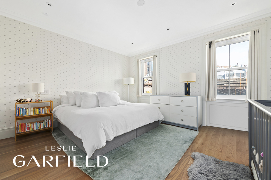 This mint-condition single-family townhouse is perfectly positioned on a prime, tree-lined Chelsea block, bordered on all sides by charming low-rise townhouses, offering both privacy and serenity in the heart of Manhattan. Masterfully reimagined by Lang Architecture, the home underwent a comprehensive renovation and vertical expansion that seamlessly marries modern sophistication with historical character. The rear façade has been fully opened to bathe the interiors in natural light, while the addition of an elevator ensures effortless access across all six levels. The residence is in pristine condition, featuring state-of-the-art finishes that pay homage to its original architectural details. A beautifully designed central staircase, with a sweeping, sculptural railing from top to bottom, anchors the home with elegance and grace. The layout reflects a reverence for traditional design, offering a harmonious balance between formal spaces and an inviting, relaxed atmosphere. The bespoke kitchen—centered around a stately marble island—flows naturally into the bluestone garden, a secluded oasis ideal for al fresco dining with barbecue and entertaining. Each interior floor is over 60’ deep, allowing for graciously scaled rooms. The Parlor level features front and rear sitting rooms that can function formally and informally. Gracious ceiling height and south-facing light flood the rooms at all times of day. The home includes four spacious bedrooms, including an extraordinary full-floor primary suite on the third level. This sanctuary features a grand bedroom, two walk-in closets, direct elevator access, a midnight bar, and a luxurious full-width primary bath with double vanities, a solid marble freestanding soaking tub, and a large steam shower. Each additional bedroom includes an en-suite bath, and the home can be easily configured to accommodate a fifth bedroom. The English Basement features front and rear access to the outdoors. A bedroom in front functions as a perfect guest or staff quarters; the rear recreational room is multi-purpose and can access the rear garden. The top floor expansion has been framed with North and South full glass sliding doors and is presently used as a gym. Outdoor living is equally impressive, with a large north-facing terrace offering open views of Hudson Yards, the Empire State Building, and Lower Manhattan. The sun-soaked roof deck includes a south-facing exposure, outdoor shower, kitchenette, and built-in barbecue—an ideal setting for entertaining or unwinding above the city. Blending timeless elegance with contemporary comfort, this residence stands as a rare offering—gracefully designed, rich in detail, and impeccably executed.