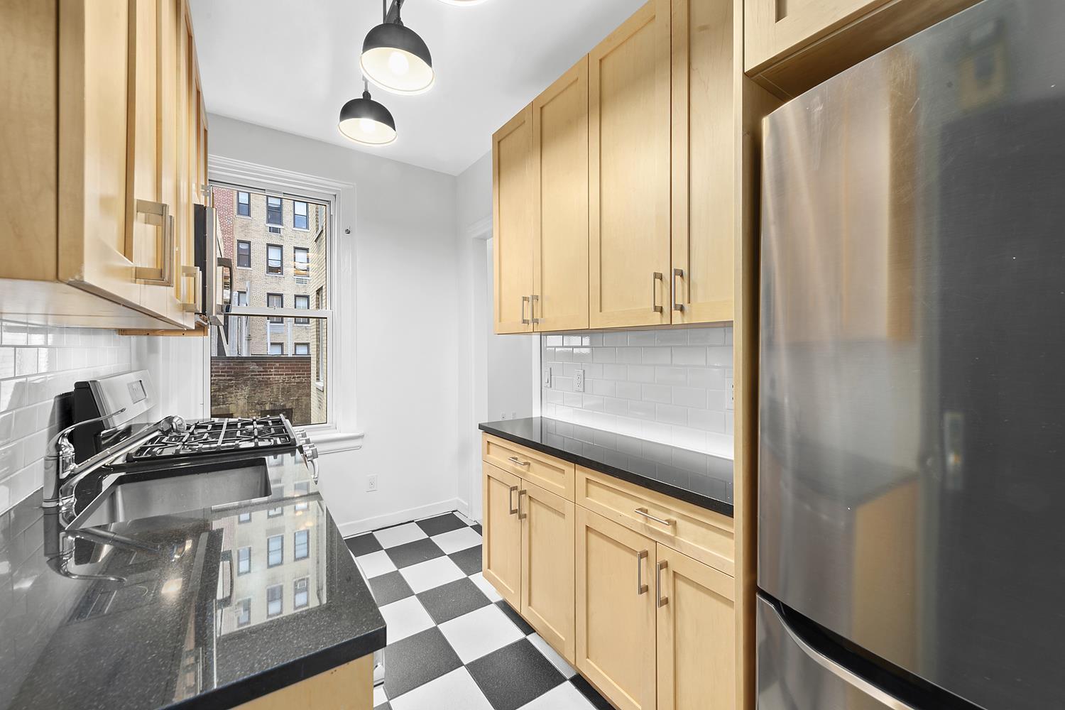 AVAILABLE NOW: This charming 2 bedroom, 1 bathroom apartment is located in a popular building close to Central Park, transportation, and shopping. It is a quiet Pre-War gem and has an entrance foyer with closet, a good sized living room with beamed ceilings, and a windowed kitchen with stainless steel appliances. There is a laundry room and bike storage and pets are welcome.