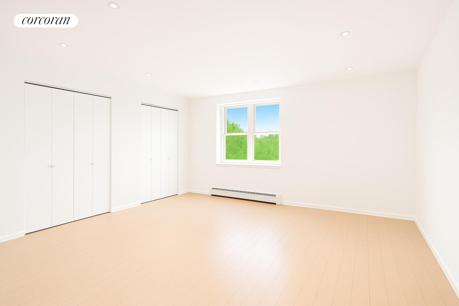 abundant cabinetry, and stainless-steel appliances. The bathroom has been completely renovated with modern finishes, while both bedrooms are generously sized with ample closet space. Throughout the apartment, high ceilings with recessed lighting and newly installed hardwood floors give the home a fresh, contemporary look.