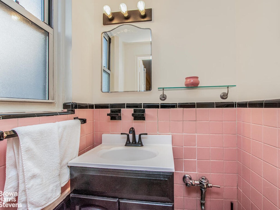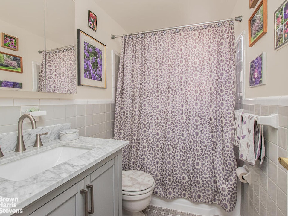 The large primary bedroom, with two exposures, easily accommodates a king-size bed and includes a windowed en-suite half bath. The second bedroom also offers two exposures and great natural light. The windowed full bathroom, equipped with a tub, is accessible from the hallway. The entire apartment is in excellent condition.